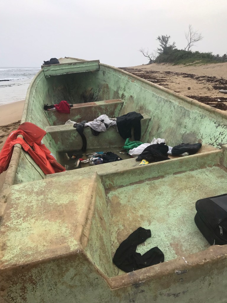 Bastó observar el interior de una varada en la orilla del feroz mar para imaginar la dantesca travesía. Desde ropa de playa o trajebaños, gorras, camisetas de manga larga, chalecos salvavidas, medias, zapatillas, toallas sanitarias, bultos y mochilas, cepillos, latas de cervezas y bebidas azucaradas, botellitas de agua, galletas, golosinas y pan.