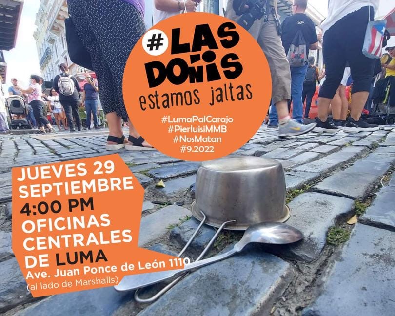 El grupo de mujeres que ya se conoce como “las Doñis contra Luma” vuelve a convocar a manifestarse contra la compañía privada de energía este jueves 29 a las 4:00 PM frente a la sede principal de LUMA en la Avenida Ponce de León en Santurce, con un tenderete de ropa sucia.