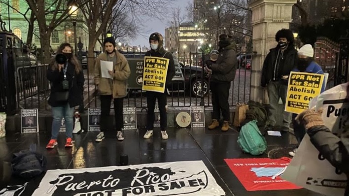 ¿Qué? Puertorriqueños y aliados protestan frente a las oficinas de la firma de abogados DLA Piper en la ciudad de Nueva York