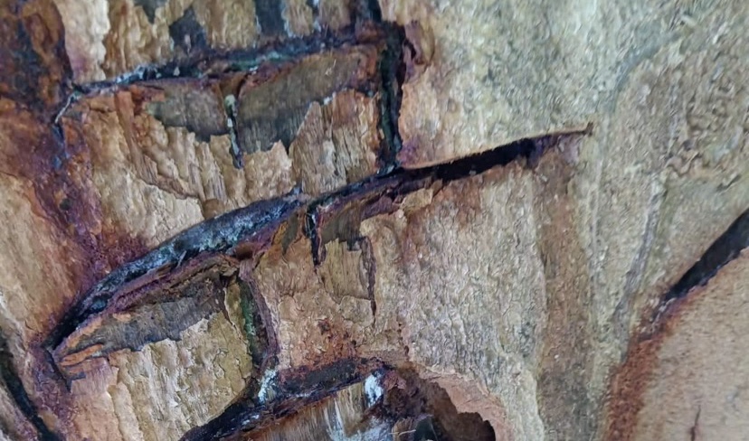 La atención médica de este árbol no está en el mismo nivel que nuestro médico de atención primaria. Comencé a limpiar la madera muerta y luego aplique un chorro fuerte de agua para eliminar los residuos del veneno que estaban impregnados en la madera.