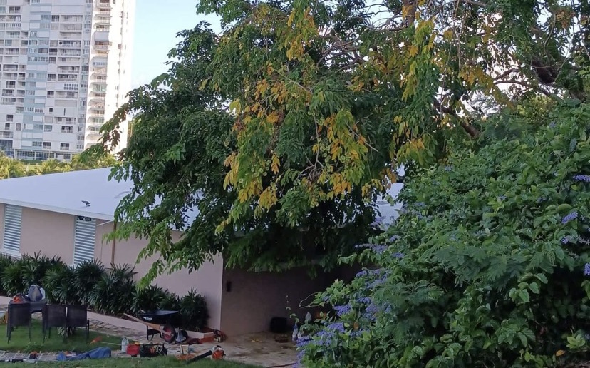 Aprovechando la noche, sigilosamente uno o varios individuos saltaron una verja de 7 pies de altura, entraron al patio de una residencia privada produciéndole varias heridas con un machete al tronco del árbol y luego le introdujeron una sustancias color azul añil.