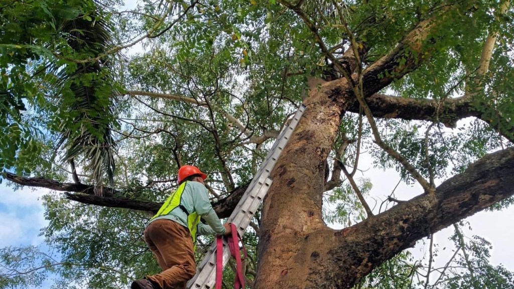 Los vientos huracanados partieron varios troncos y ramas y comenzaron a podrirse atrayendo los comejenes. Un tronco con podredumbre a una altura de 70 pies es un proyectil para cualquier persona que esté debajo de estos árboles.