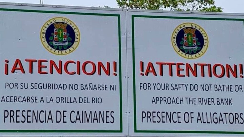 No se recomienda nadar en ríos y pescar en quebradas y riachuelos. Ya en Patillas se colocan letreros que advierten de la presencia y proliferación de caimanes en sus ríos.