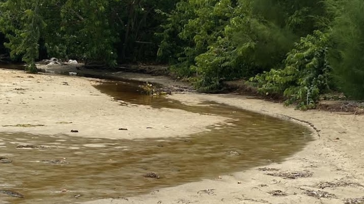 Me marchaba pensando que los misteriosos ojitos eran de un carey o quizás un manatí, especies que abundan en el litoral. Pero no. Al acercarme al caño que desemboca en la playa vi, un poco arisco, un caimán de mediana estatura que se internaba al manglar.