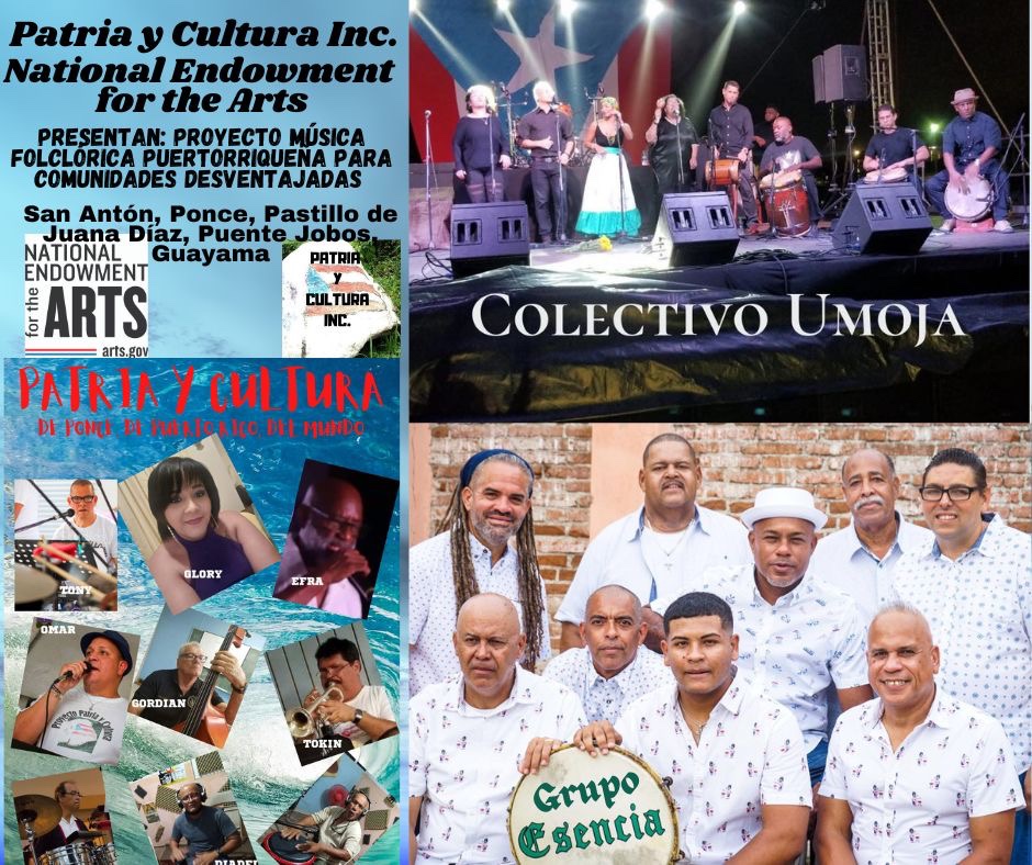 Este proyecto presentará tres conciertos. La primera será por Colectivo UMOJA en el Centro Comunal y Cultural del Barrio San Antón, Ponce, PR en el mes de febrero de 2023, la segunda será por Patria y Cultura en Pastillo de Juana Díaz, PR en el mes de abril de 2023 , y el tercero será por Grupo Esencia en Placita de Puente Jobos, Guayama, PR en el mes de agosto de 2023.