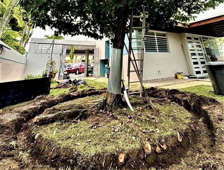 Esta semana estuvimos manejando las raíces de un árbol de Maria de 35 años de edad en el patio de una residencia en la urbanización Plaza Las Garzas en la ciudad de Toa Baja, Puerto Rico.