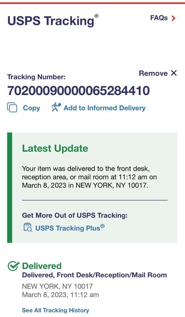 Los lectores de Prensa sin censura pueden seguir el rastreo de la carta en: http://www.usps.com, mediante el número: 7020 0090 0000 6528 4410