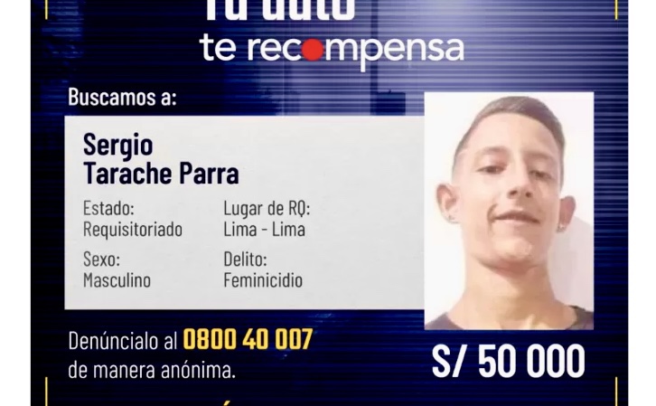 El Ministerio del Interior ofrece ahora una recompensa de 50.000 soles (unos US$13.000) por la captura de Tarache Parra, de 19 años.