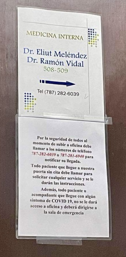 Este no solo ocurre en esta oficina. Sucede en otras, como la de mi internista en Country Club, Dra. Tossas, que también está con estos caprichos.