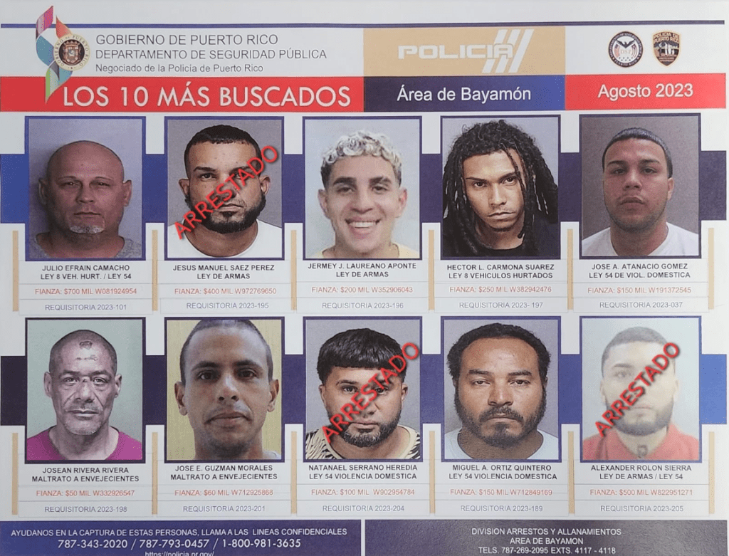 En horas de la tarde de ayer, agentes adscritos a la división de Arrestos Bayamón de la Superintendencia Auxiliar en Operaciones Especiales, diligenciaron una orden de arresto contra un hombre que figuraba en la lista de los más buscados del área de Bayamón.