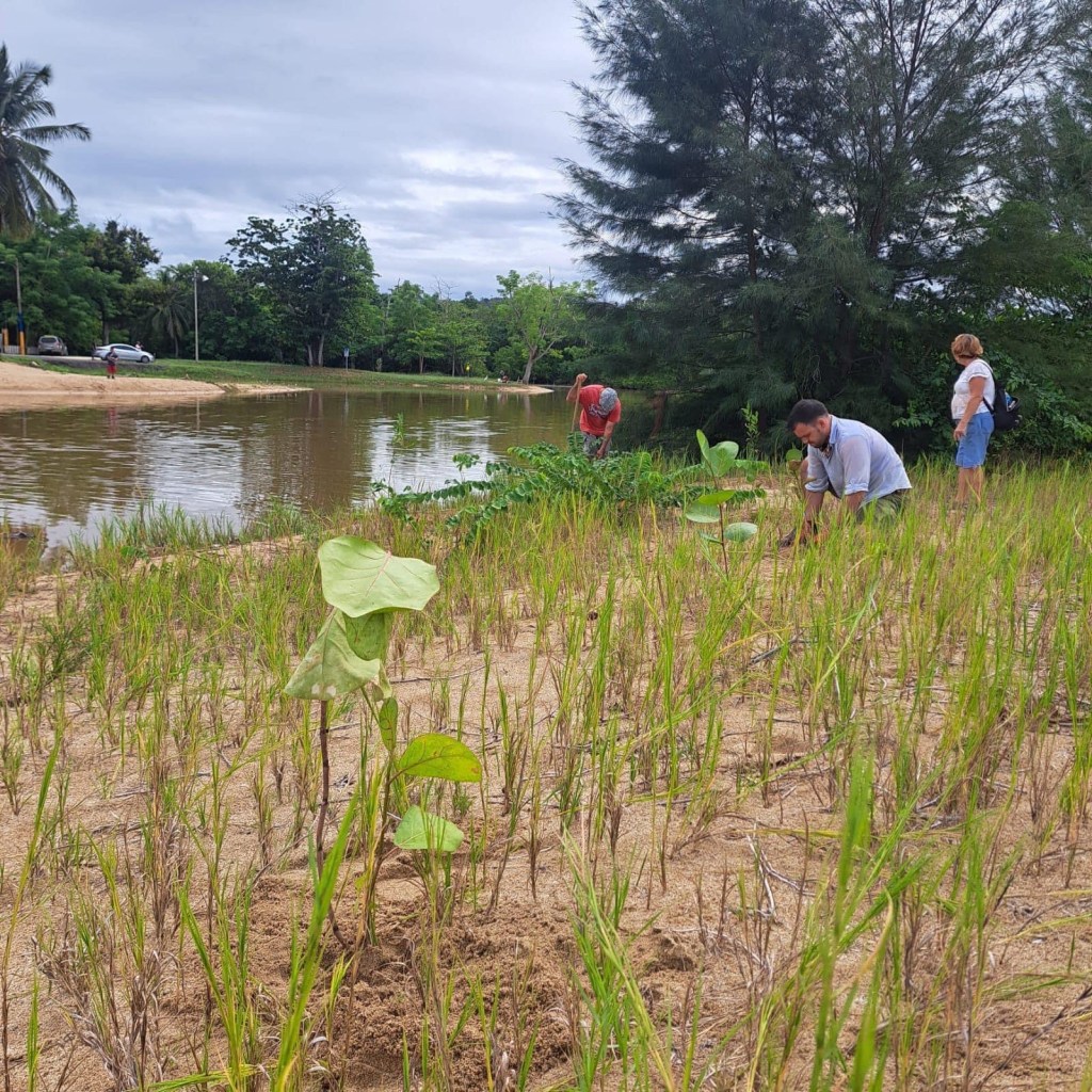Los árboles sembrados incluyen una variedad de especies autóctonas tales como el mangle botón, palmas de yarey, uva playera y árbol de María.