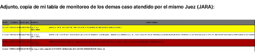 Adjunto, copia de mi tabla de monitoreo de los demas casos atendidos por el mismo Juez (JARA):