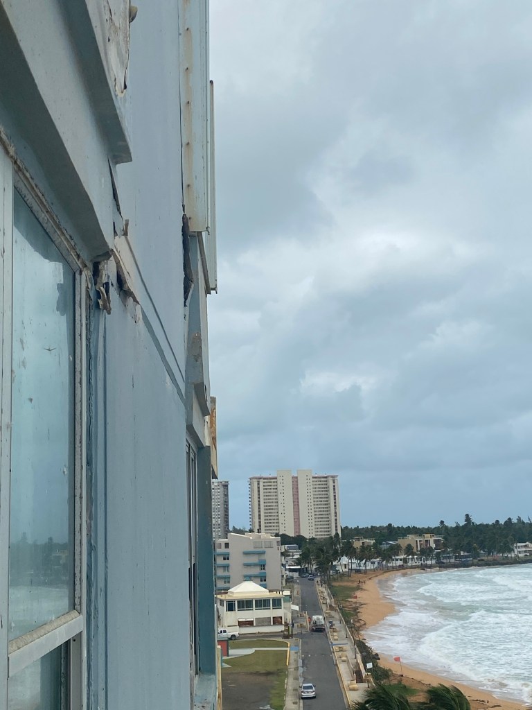 En 2021, durante una pasada presidencia, en asamblea se le presentaron opciones para contratar una compañía constructora que reparara los edificios y los pintara. “Había casi 2 millones separados para eso, del dinero que pagó la aseguradora post María. Nos dieron más, pero la administradora de entonces arregló las verjas de las piscinas y nos dieron dinero a nosotros para reparar algunas cosas. La constructora comenzó en 2021, con un gerente de proyecto que es ingeniero estructural. Nosotros los titulares escogimos a una de las tres compañías que nos presentaron. Comenzaron por la Torre Oeste con la cara que da hacia la calle. Hubo vecinos que se quejaron por los desprendimientos de cemento. Así comenzó una controversia. Y se paralizó la obra”.