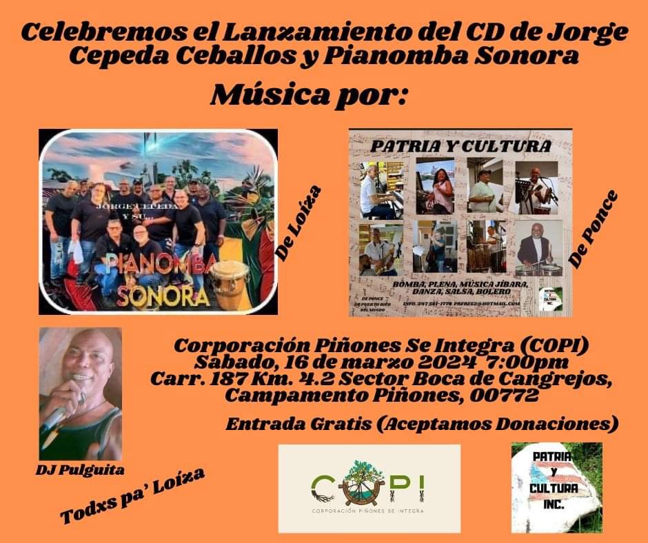 Su lanzamiento oficial será el sábado 16 de marzo desde las 7pm en la sede de la Corporación Piñones Se Integra (COPI).