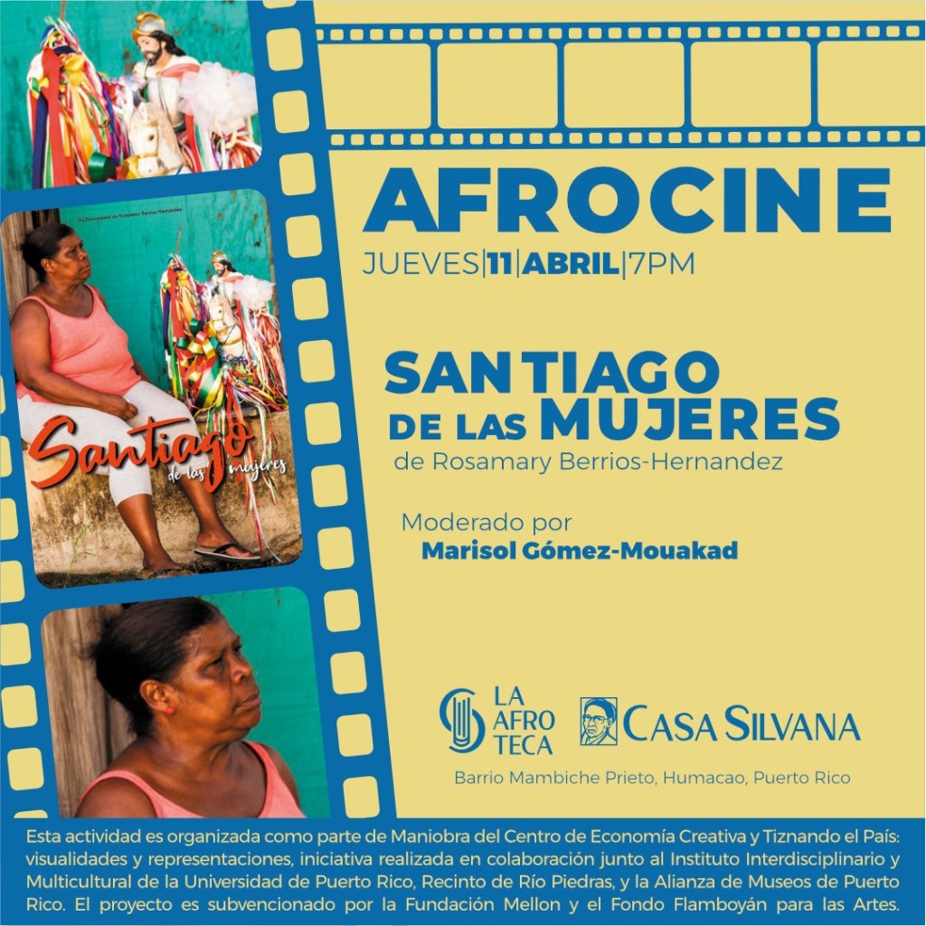 Humacao, Puerto Rico – En el marco de la celebración de la Semana de la Biblioteca 2024 del 7 al 13 de abril la Afroteca, biblioteca sobre arte de la diáspora africana, de Casa Silvana, proyectará como parte del Ciclo Afro Cine de “Tiznando el país” el documental “Santiago de las Mujeres» de la directora loiceña Rosamary Berríos hoy jueves 11 de abril a las 7:00PM.