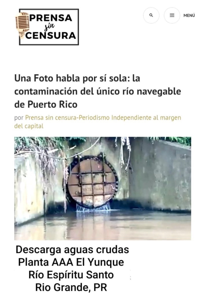 De igual forma, presentó prueba gráfica de las descargas crudas que la AAA vierte, a través de tuberías de la Planta de Filtración El Yunque, ubicada en la margen oriental del mismo río.