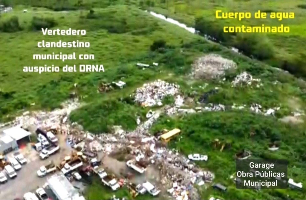 Para sustentar sus acusaciones, el ambientalista riograndeño mostró abundante evidencia fotográfica, entre ellas, la de un mega vertedero clandestino que opera ilegalmente el Alcalde de este municipio en la carretera PR-187 en terrenos adyacente a un afluente del mencionado río.