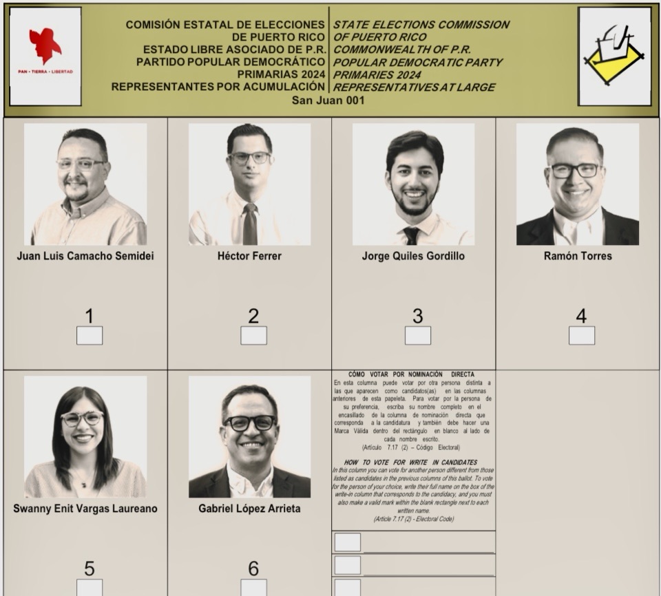 Representantes por acumulación – Swanny Enit Vargas Laureano, Ramón Torres, Juan Luis Camacho Semidei y Gabriel Lopez Arrieta.