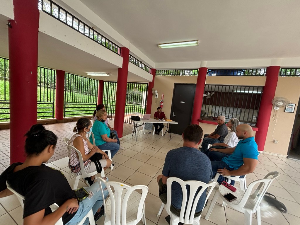 El líder Eladio Cruz del Valle junto a Evangelio Nieves González, George Mendoza Roque, candidato a representante por el Proyecto Dignidad para el Distrito 32 de Caguas, la candidata a alcaldesa por la misma colectividad Dora Colón, don Héctor González, Gladys Rotger Arroyo, Madeline Avilés, la joven Naishaly Delgado, Roberto Carrasquillo y Janet Ramírez, de la Urbanización Paseos del Río, recibieron a PSC en su centro comunal.