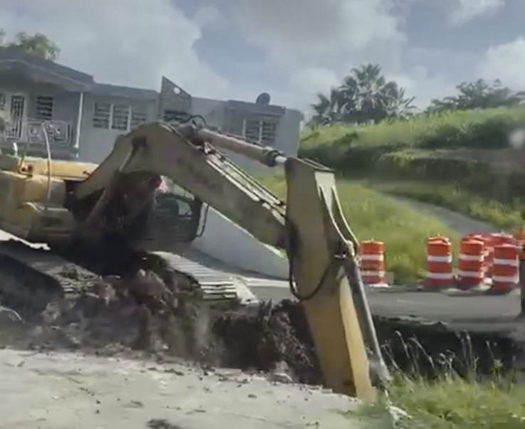 En las fotos suministradas a la prensa se evidencian los trabajos de equipo pesado en el interior de un patio doméstico, una excavadora del Municipio y unas 10 unidades de tubería en cemento armado listas para ser instaladas, y al menos cuatro vehículos rotulados del Departamento de Obras Públicas del Municipio de Guaynabo frente a la referida residencia.
