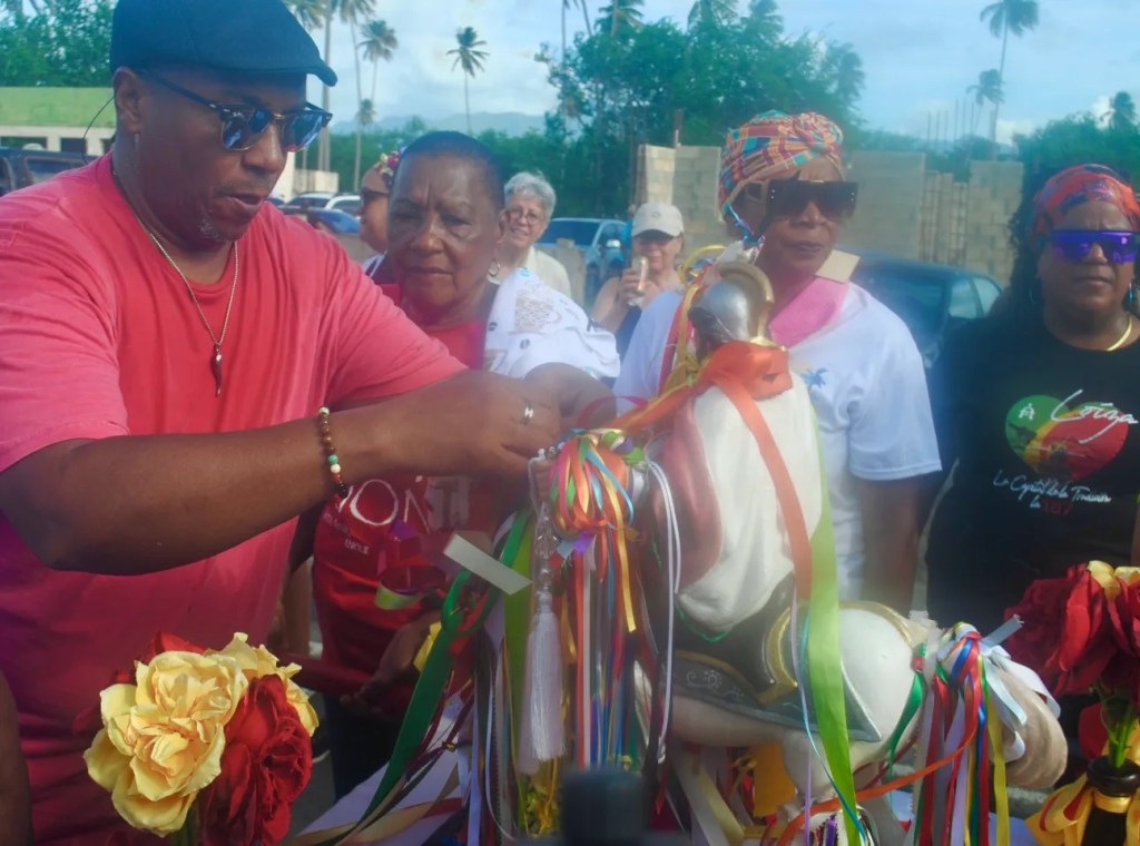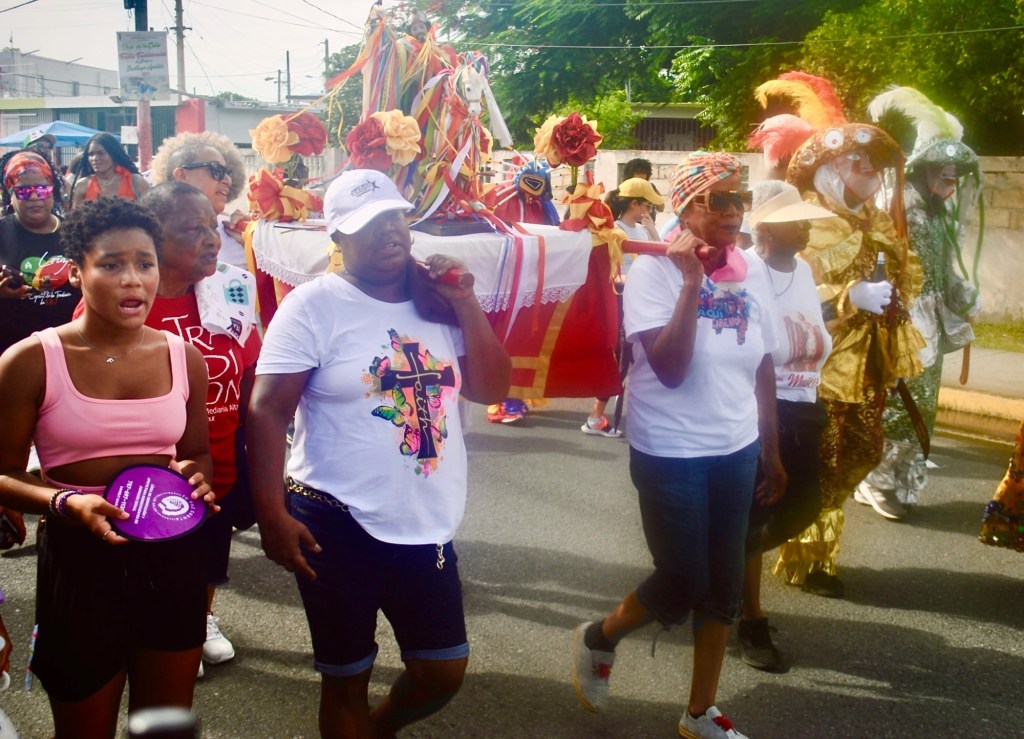 La procesión finalmente recorrió la arteria principal de Las Carreras y metros antes del monumento donde estuvo el árbol de corcho, donde apareció la imagen, se tocó y bailó la bomba de Loíza.