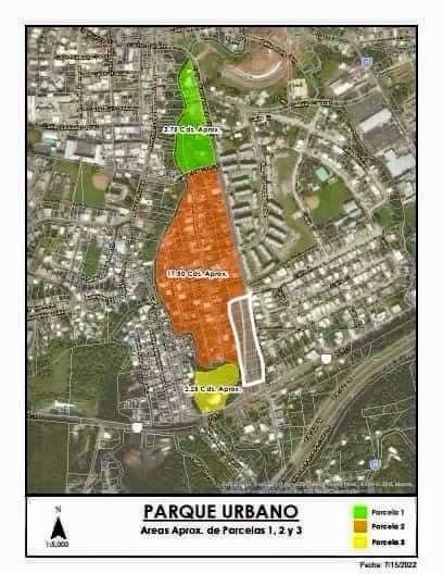 En Cayey y en toda la Isla se vive una crisis de vivienda accesible. Sin embargo, el alcalde de Cayey, Rolando Ortiz insiste en seguir expropiando viviendas aledañas al casco urbano. La foto muestra el área residencial que el municipio planifica expropiar para construir un «parque urbano». El área marcada en el recuadro blanco, corresponde a lotes de viviendas expropiados hace 14 años y que al día de hoy, siguen vacíos en la comunidad Carrasquillo. ¿Hacia dónde los desplazan? Hacia los otros 21 barrios donde ni siquiera tienen servicios decentes de agua, luz y carreteras.
