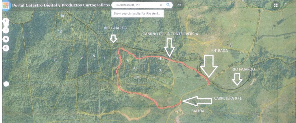 Pude dialogar con el Sr. Pérez Nazario, quien enojadamente me indicó que el camino le pertenece, alegando que es de su propiedad. Seguidamente visité la Alcaldía de Ceiba donde fui atendida por el Sr. Joshua Díaz Rivera, Secretario Municipal, para averiguar si la información que el Sr. Pérez Nazario me había indicado era la correcta. Luego que realizaron una verificación geográfica en el Sistema de Catastro Digital, se desprende que el terreno donde fueron colocados los portones pertenece al Municipio de Ceiba.