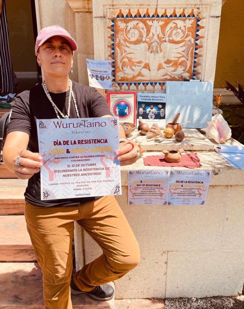 “Es lamentable que una institución universitaria como lo es la UPR en una era donde la información está tan asequible, se preste para seguir propagando la glorificación de una figura genocida como lo es y representa Cristóbal Colón, quien también inició la trata humana de nuestros ancestros indígenas antillanos.” – Tai Pelli, Oficial de Relaciones Internacionales y Derechos Humanos de la Confederación Unida del Pueblo Taíno
