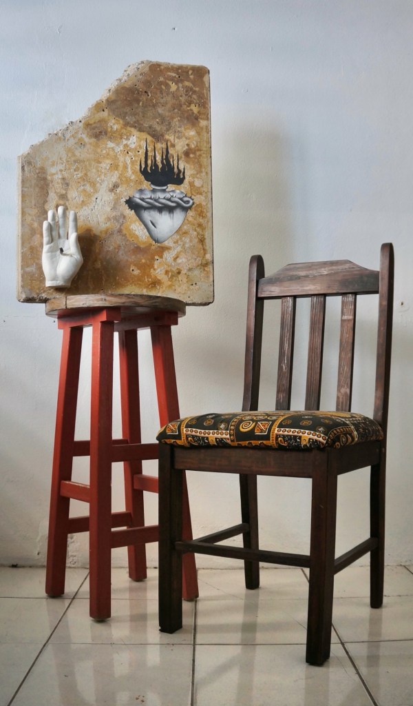 Sobre su proceso creativo el artista nos comenta: “A través de mi práctica, empleo varios medios, entre ellos el dibujo, el grabado y el ensamblaje. El uso de técnicas tradicionales junto a técnicas y tendencias más contemporáneas llevan a la creación de obras que se desplazan entre sí. Consecuentemente, busco tener un acercamiento íntimo con mi comunidad, para que, a través del uso de mi cuerpo como conducto, las personas negras, se sientan identificadas, sus experiencias validadas, con el propósito de establecer un espacio de sanación cíclica.”