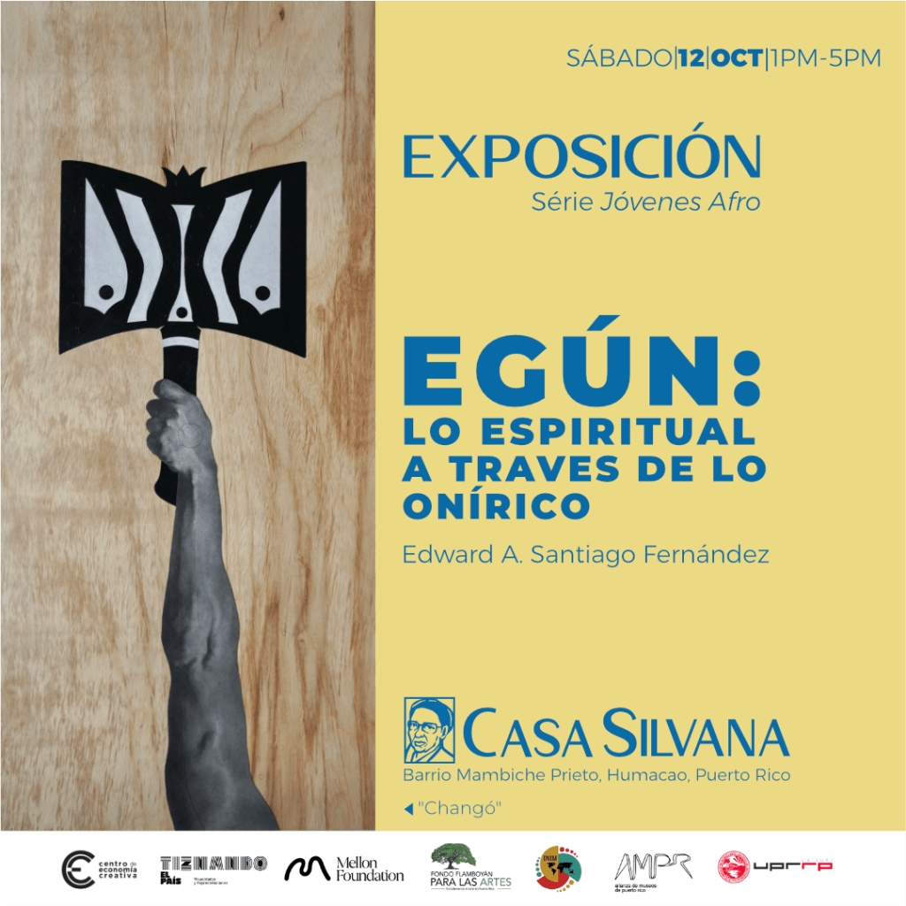 (Viernes 11 de octubre de 2024, Humacao, Puerto Rico) – Casa Silvana continúa presentando con su proyecto “Serie Jóvenes Afro” una nueva generación de artistas plásticos puertorriqueños afrodescendientes e inaugura mañana sábado, 12 de octubre de 2024 de 1:00 a 5:00 pm la exposición individual titulada “Egún: lo espiritual a través de lo onírico” del artista afropuertorriqueño Edward A. Santiago Fernández.