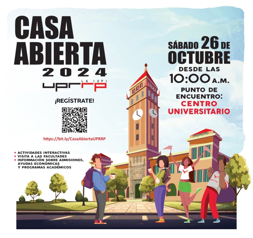 (Viernes 11 de octubre de 2024) – La Universidad de Puerto Rico, Recinto de Río Piedras (UPRRP), anunció que llevará a cabo su Casa Abierta 2024 el sábado, 26 de octubre de 2024 de 10:00 a.m. a 3:00 p.m. para estudiantes procedentes de escuela superior pública, privada o homeschooler.