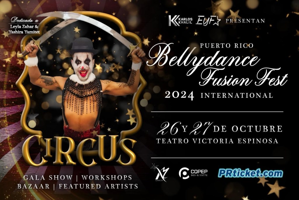 Las funciones del Puerto Rico Belly Dance Fusion Fest International “Circus” se llevarán a cabo el 26 de octubre a las 8:30 p.m. y el 27 de octubre a las 6:00 p.m. en el Teatro Victoria Espinosa en Santurce. Los boletos están disponibles en PRTicket o llamando al 787-200-7110.