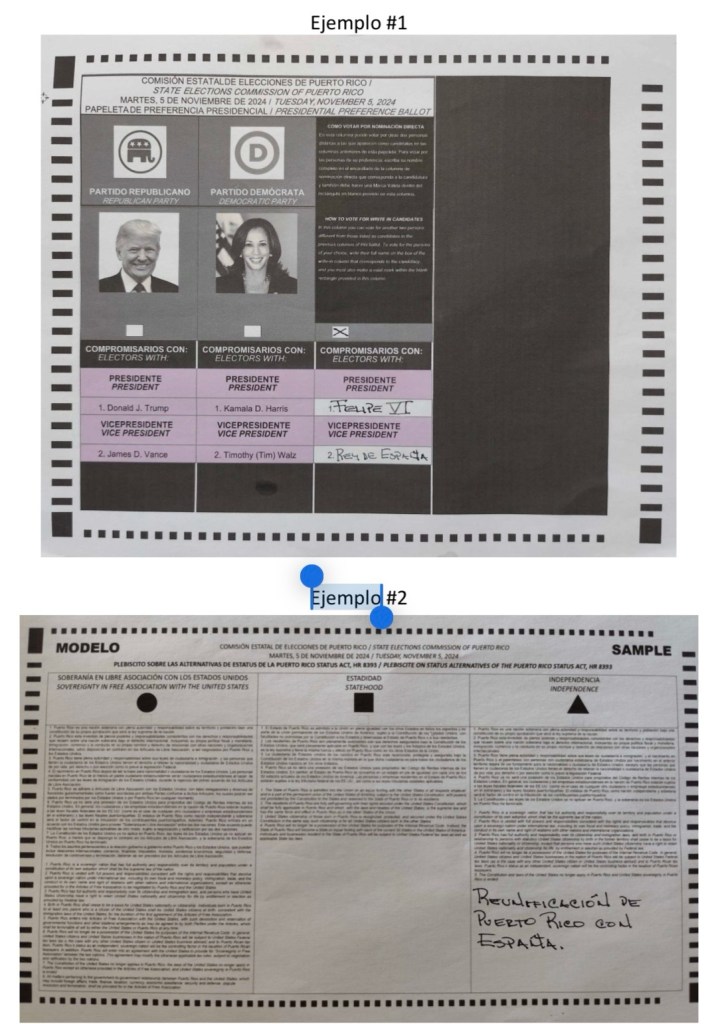 ◦ En el segundo encasillado, escribir: Rey de España. La máquina contará esas papeletas como una nominación directa. La Comisión Estatal de Elecciones (CEE), estará en la obligación de tabularlas.