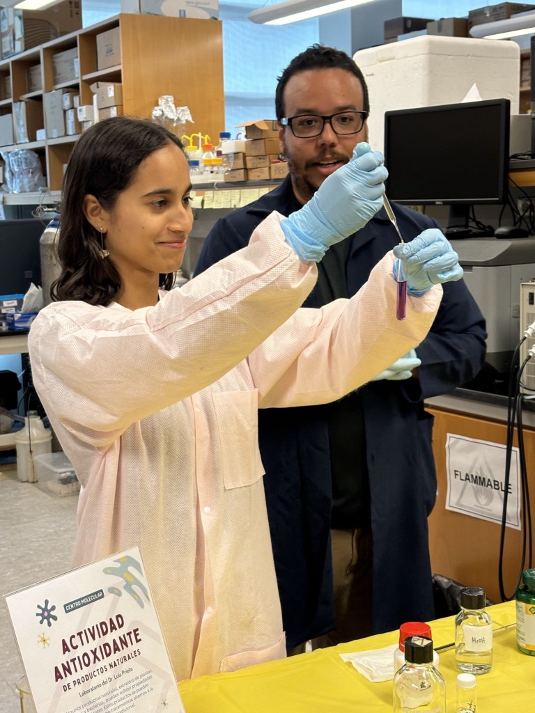 Más de 130 estudiantes, juntos a sus maestros, padres y tutores, disfrutaron de actividades interactivas alusivas a las investigaciones que se llevan a cabo en el Centro Molecular de la UPR. Un ejemplo de estas fue ‘De algas a medicinas’, con el propósito de explicar lo que se hace en el Laboratorio de Productos Naturales Marinos, y ‘De polímeros a membranas’ que ilustró la ciencia que se trabaja en el Laboratorio de Materiales Poliméricos y Multifuncionales para Aplicaciones Medioambientales y Biomédicas.