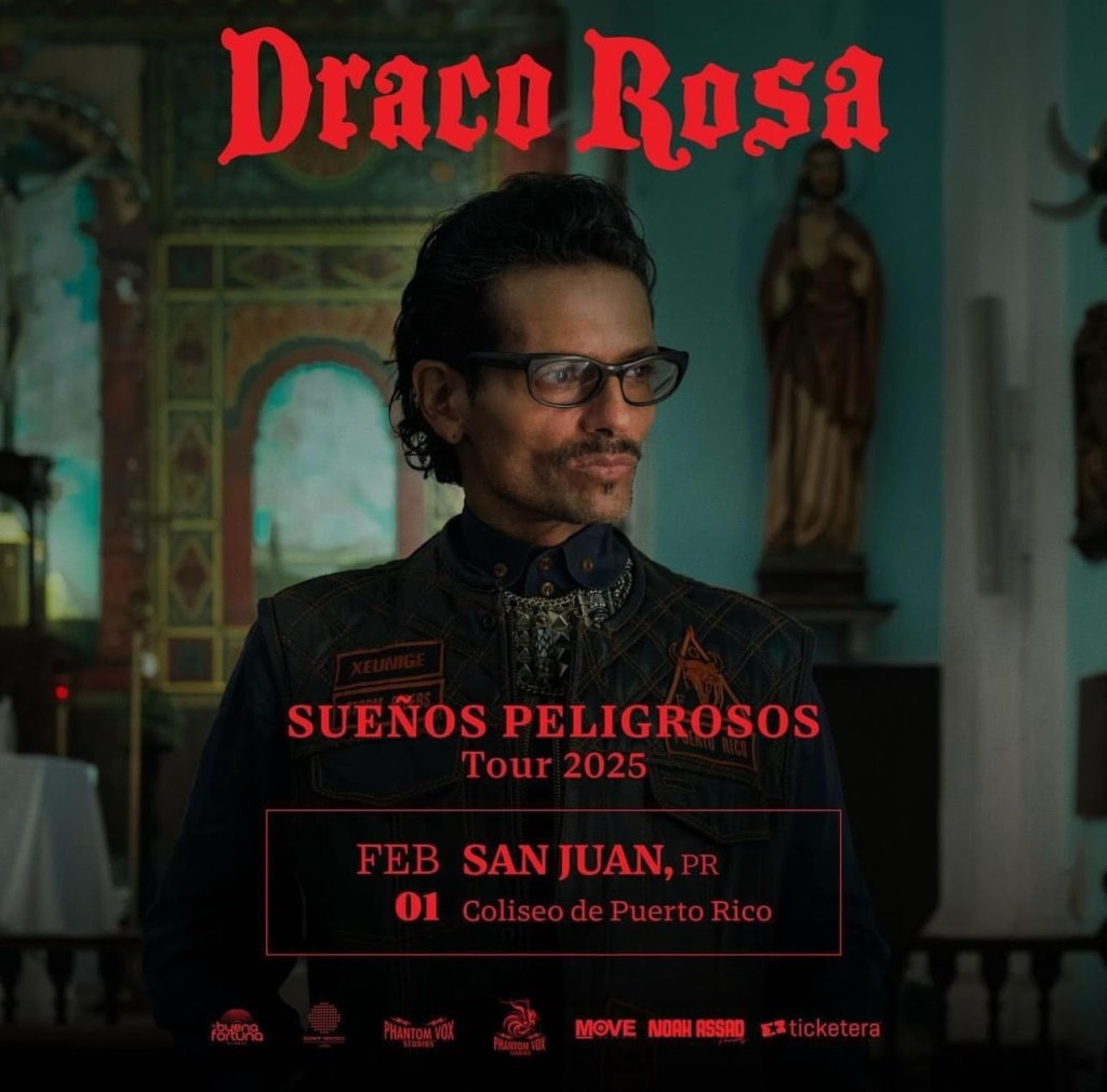 (San Juan, Puerto Rico- lunes, 18 de noviembre de 2024)– El cantautor puertorriqueño Draco Rosa, uno de los músicos más versátiles y prestigiosos que ha dado la música latina, ha confirmado su regreso a casa con su próximo concierto en el Coliseo de Puerto Rico, el 1ro de febrero de 2025, dónde iniciará su nueva gira mundial “Sueños Peligrosos Tour 2025”.