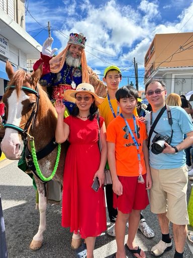 Según explicó, supieron de los Reyes de Juana Díaz y de la tradicional Fiesta de Reyes por referencia de puertorriqueños y decidieron vivir la experiencia de pasar este Día de Reyes en el referido pueblo sureño.