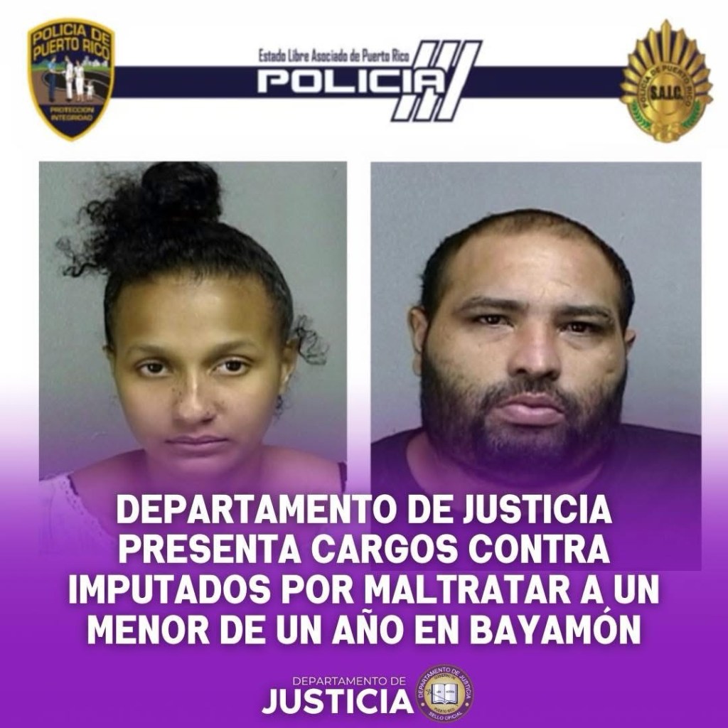 (Sábado 18 de enero de 2025) – La secretaria del Departamento de Justicia, Janet Parra Mercado, informó que la Fiscalía de Bayamón, presentó cargos contra Erika Michelle Franco Crisostomo, de 23 años, y Kevin Francisco Otero Rodríguez, de 32 años, por maltratar a un menor de un año en Bayamón.