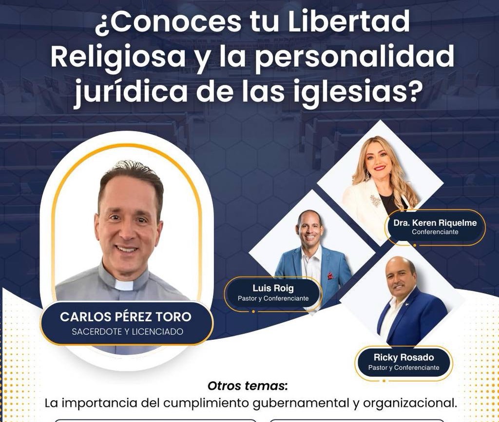 También se discutirá sobre el tema de la importancia del cumplimiento gubernamental y organizacional. Si Fungirán como conferenciantes la Dra. Keren Riquelme, el sacerdote Carlos Pérez Toro y los pastores Luis Roig y Ricky Rosado.