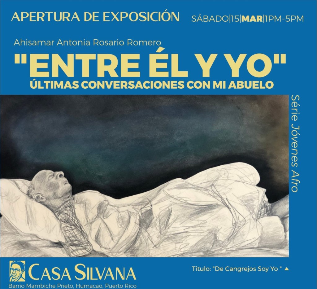 (Humacao, Puerto Rico, 14 de marzo de 2025) – En saludo a la Cumbre Internacional de Afrodescendencia 2025 a celebrarse del 17 al 20 de marzo en la Universidad de Puerto Rico Recinto de Río Piedras, el espacio cultural Casa Silvana en Humacao presenta mañana sábado 15 de marzo de 1:00 a 5:00 pm la exposición individual de la artista Ahisamar Antonia Rosario Romero titulada “Entre Él y Yo”, Últimas Conversaciones con mi abuelo.