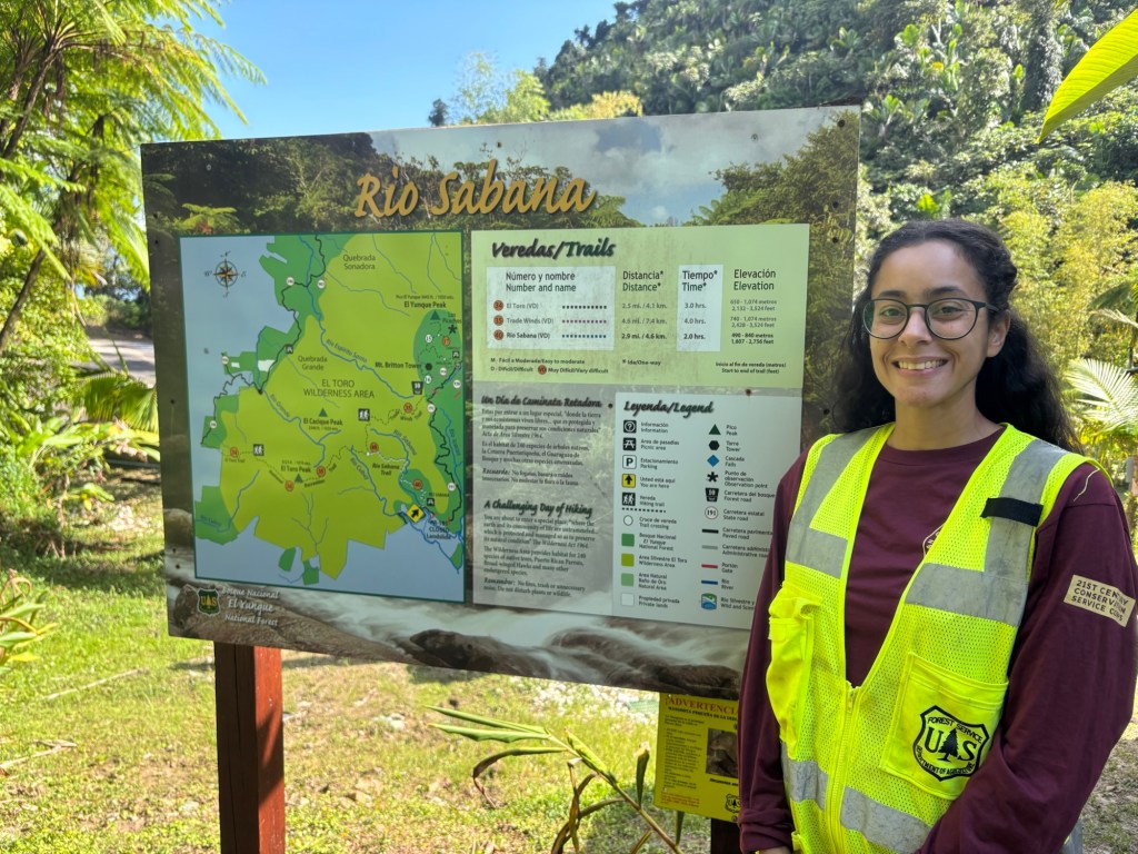 “Me encargo de que las personas usen el área correctamente y de orientarles sobre las veredas”, dijo la atenta joven, empleada de America Conservation Experiences que ofrece respaldo al Servicio Forestal de Estados Unidos.