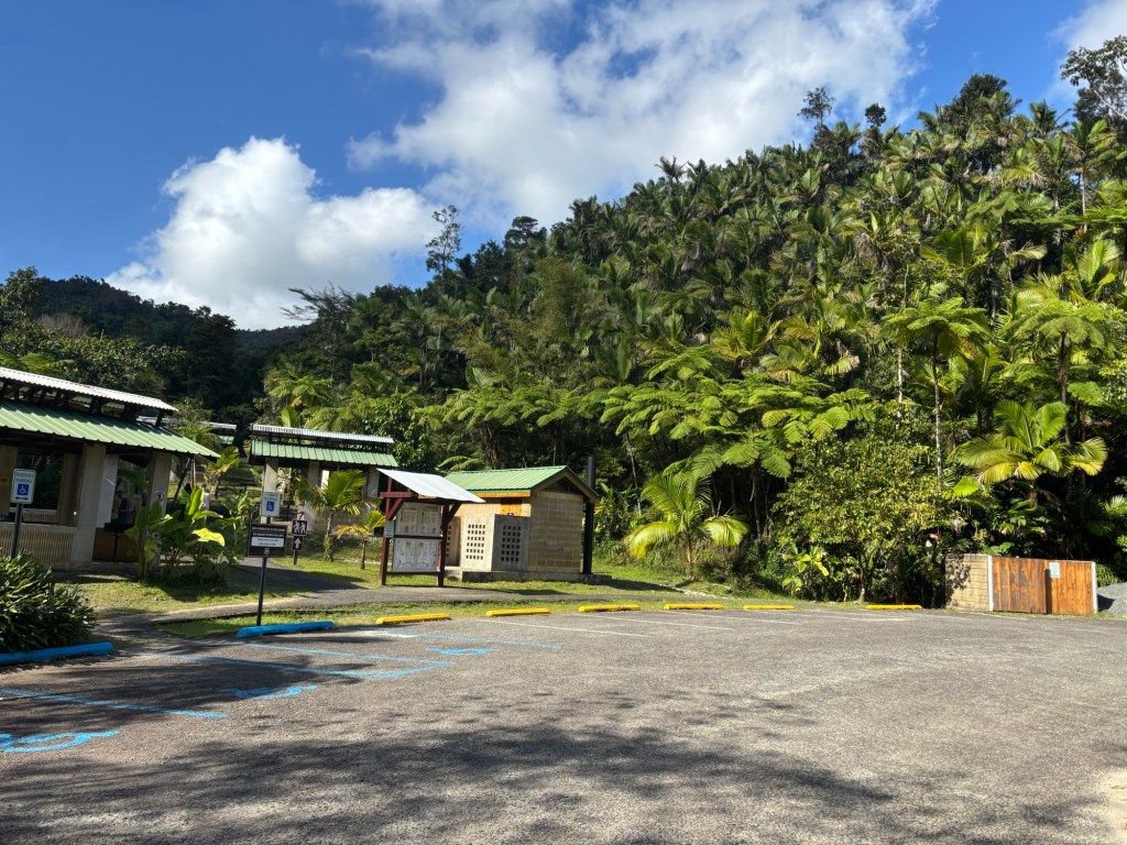 Y al cabo de algunos 20 minutos ya estás en lo alto de El Yunque. Hay una valla que no permite acceso en auto a la zona recreativa entre lunes y jueves, pero se puede estacionar y caminar alrededor de 20 minutos.