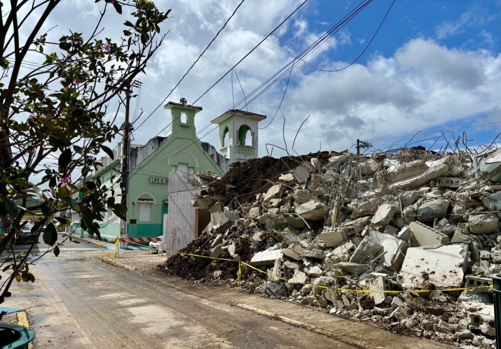 A pasos las ruinas del Coliseo de Cayey: convertido en depósito de basura, refugio de felinos y vertedero de escombros, a plena vista en la PR-1, en un enorme centro comercial con decenas de locales vacíos, como una confirmación de lo maltrecha que está la economía cayeyana.