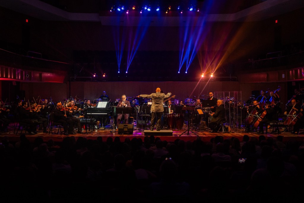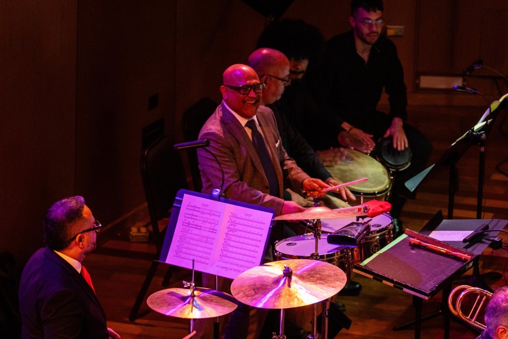 El concierto gravitó en torno al jazz latino y como complemento de la Orquesta Sinfónica, su conjunto Pikante, integrado por los trompetistas Manuel ‘Maneco’ Ruiz y Jochy Rodríguez, el bajista Yosmel Montejo y la poderosa percusión de Javier Oquendo (tumbadoras), Raymond Rodríguez (bongó) y Pablo Padín (timbales).