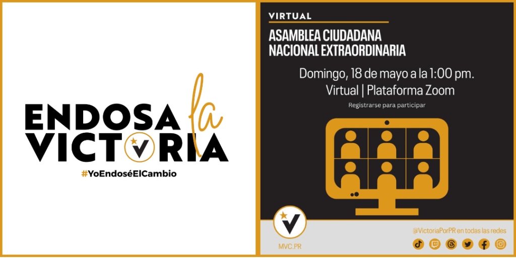Este domingo, 18 de mayo a la 1pm celebraremos la Asamblea Ciudadana Nacional Extraordinaria para determinar la estructura organizativa que se implementará a partir de julio 2025. Más adelante esta semana recibirás detalles y documentos con las propuestas de cambio que se discutirán en la asamblea. No te quedes sin participar. ¡Reclama tu boleto!