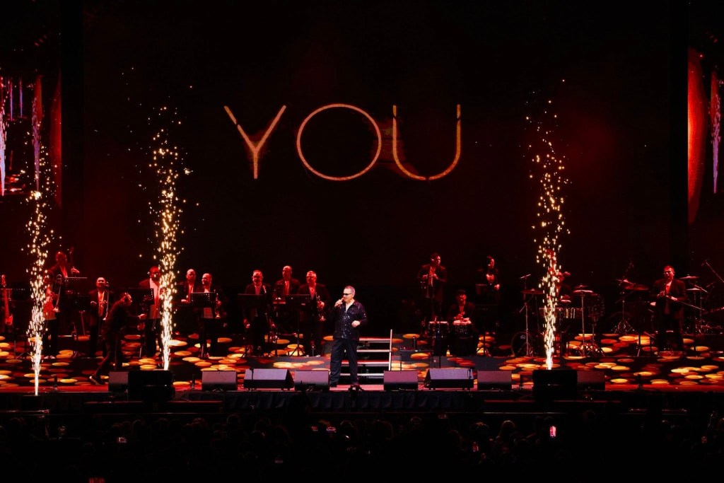 El solista demostró la evolución de su trayectoria, pasando a la siguiente etapa de su ruta, que incluyó los temas‘Quiero perderme contigo’ y ‘El amor más bonito’. Antes de iniciar con ‘Perdido en la oscuridad’, Tito aseguró que -durante una de las etapas más difíciles de su vida- le pidió permiso a José José para grabarla. ‘Un tipo común’ antecedió la intervención hablada de Tito durante la que solicitó «un fuerte aplauso para Ismael Miranda “el eterno niño bonito”, quien se encuentra entre nosotros esta noche».