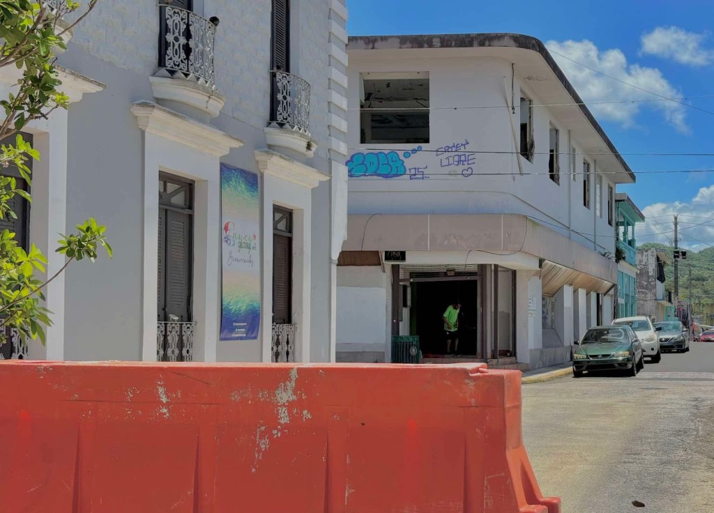 A pasos de la Plaza Ramón Frade y detrás de la vieja alcaldía de Cayey, hay un edificio utilizado como hospitalillo. Han pasado aproximadamente 6 años desde que planificaron su demolición, pero sigue en pie. Este edificio albergó oficinas municipales, las cuales mudaron innecesariamente, al espacio que dejó vacante la Universidad Ana G Méndez en la «Plaza Empresarial». En la foto se aprecian las problemáticas principales de Cayey: edificios en buen estado transformados en escombros de mano del municipio, falta de vivienda, cierres innecesarios de vías de rodaje, falta de policía municipal, necesidad de áreas verdes y participación ciudadana. En fin, el casco urbano de Cayey: convertido en escombros, cuyos muros expresan la necesidad de libertad.