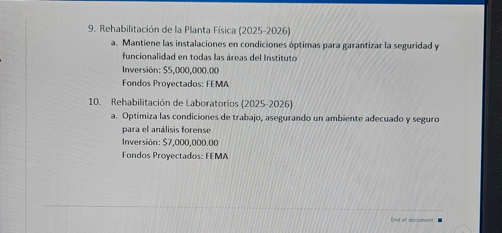 Dra. María Conte, usted nos envió un correo electrónico donde nos habla sobre sus logros en los proyectos de infraestructura en el Instituto de Ciencias Forenses (ICF).