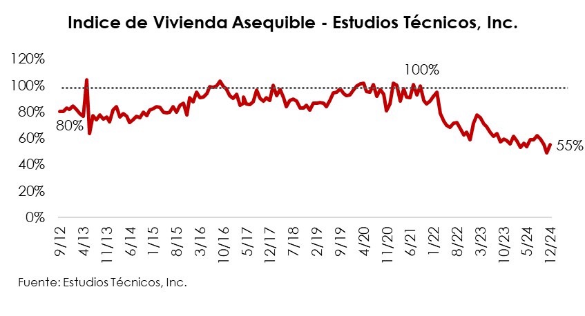 Estudios Técnicos, Inc. informa que el índice de vivienda asequible cayó a niveles históricamente bajos al cierre del 2024
