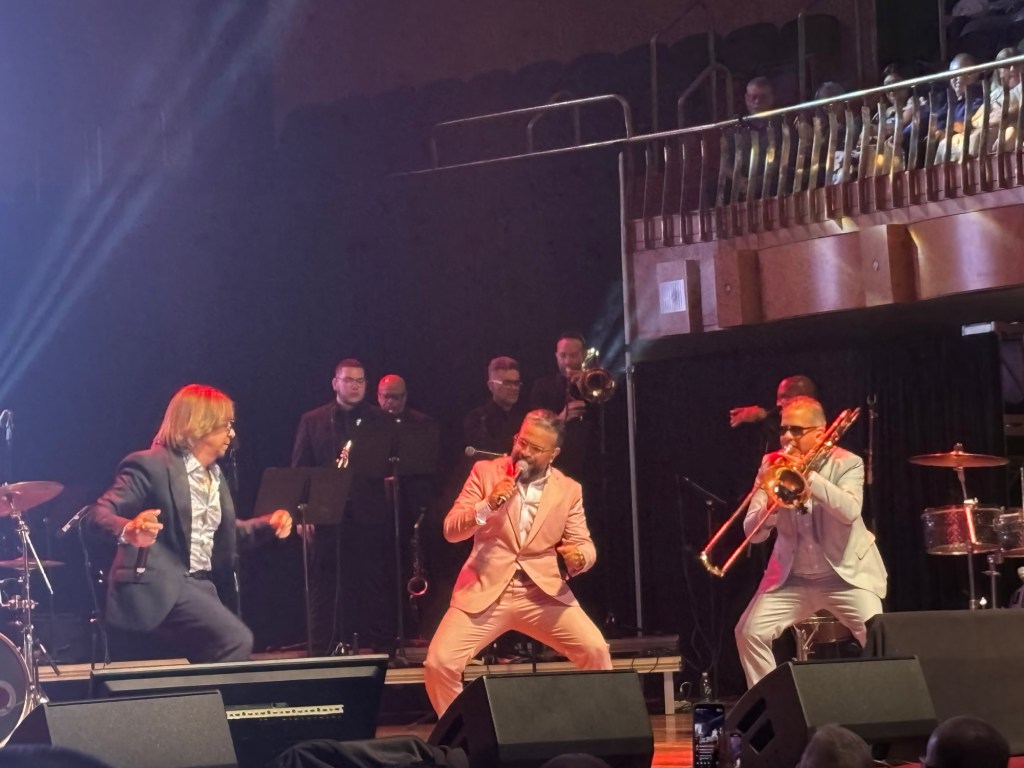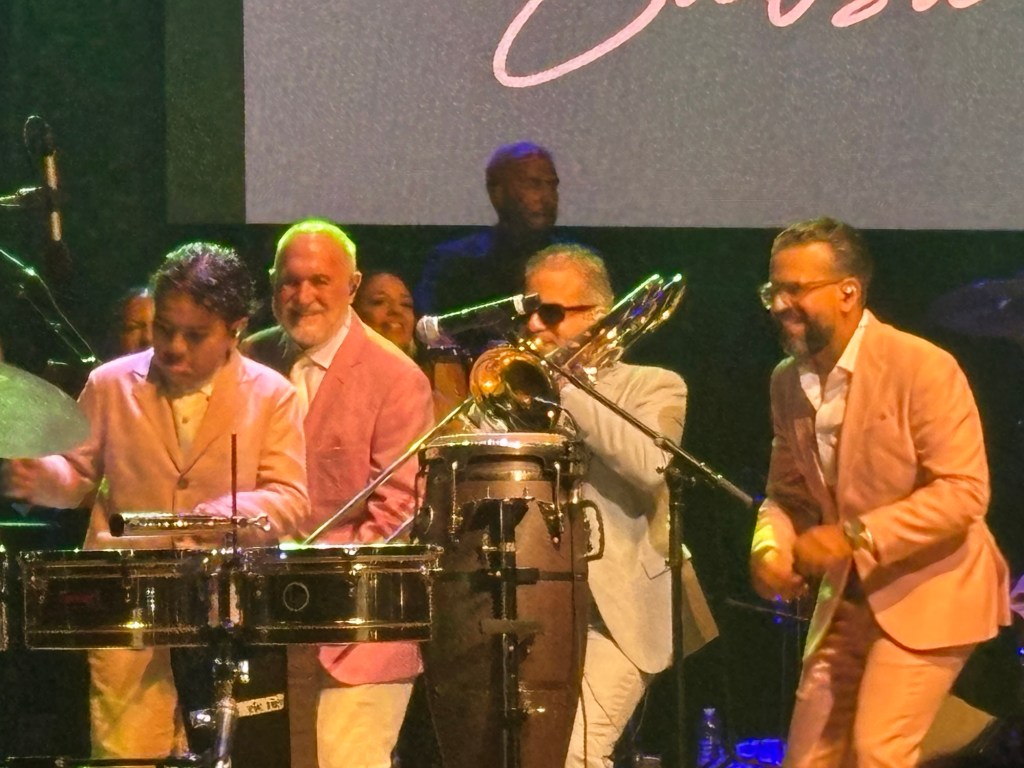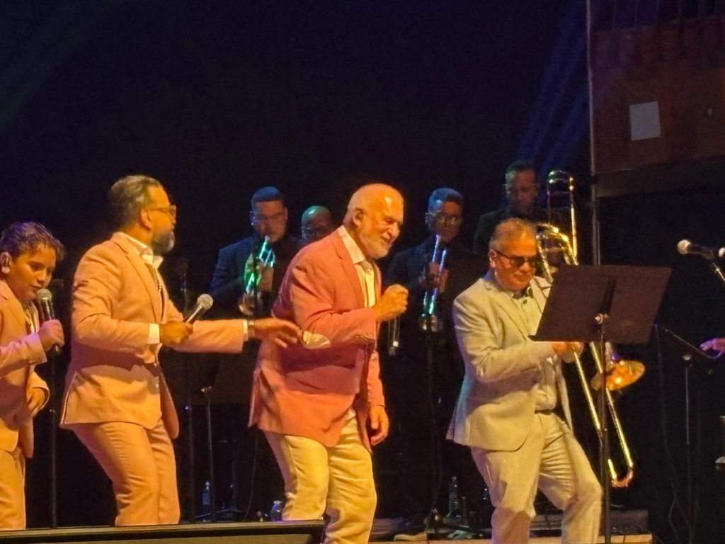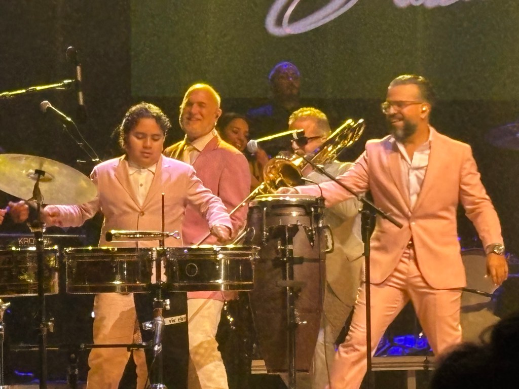 La entrada de su hijo Gerardo Gabriel para cantar y tocar el timbal “En el futuro de la salsa” y en el nuevo sencillo “Padre e hijo”, en que cantan los cuatro, fue el punto culminante de la noche por su fuerte carga emocional-familiar-sentimental.