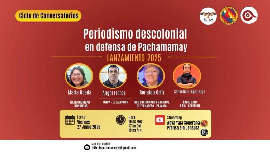 Estos conversatorios marcan una continuidad del proceso de formación denominado “Taller de periodismo descolonial” que se llevó a cabo desde septiembre a diciembre de 2024 a través del canal YouTube de la organización continental Abya Yala Soberana.